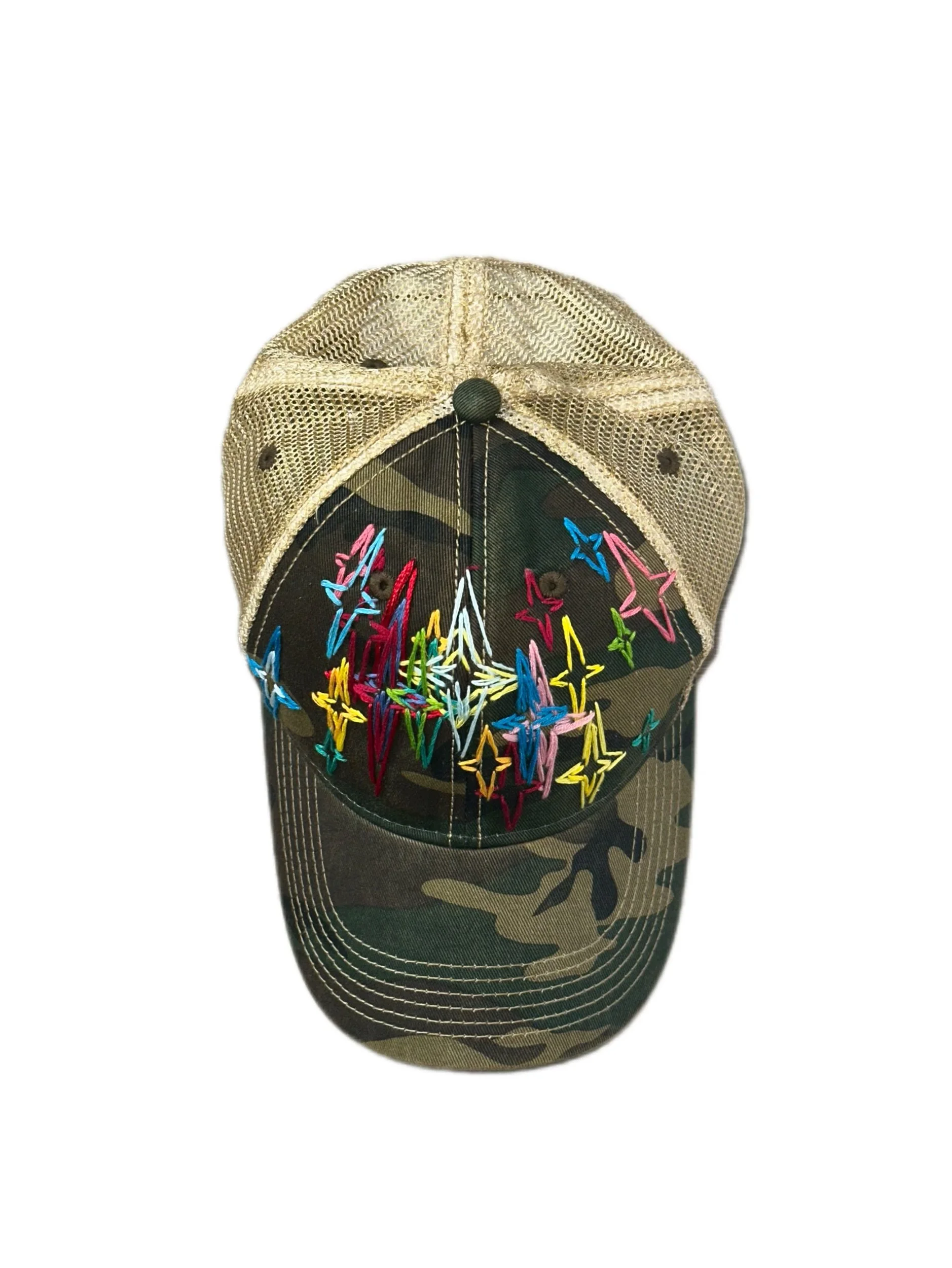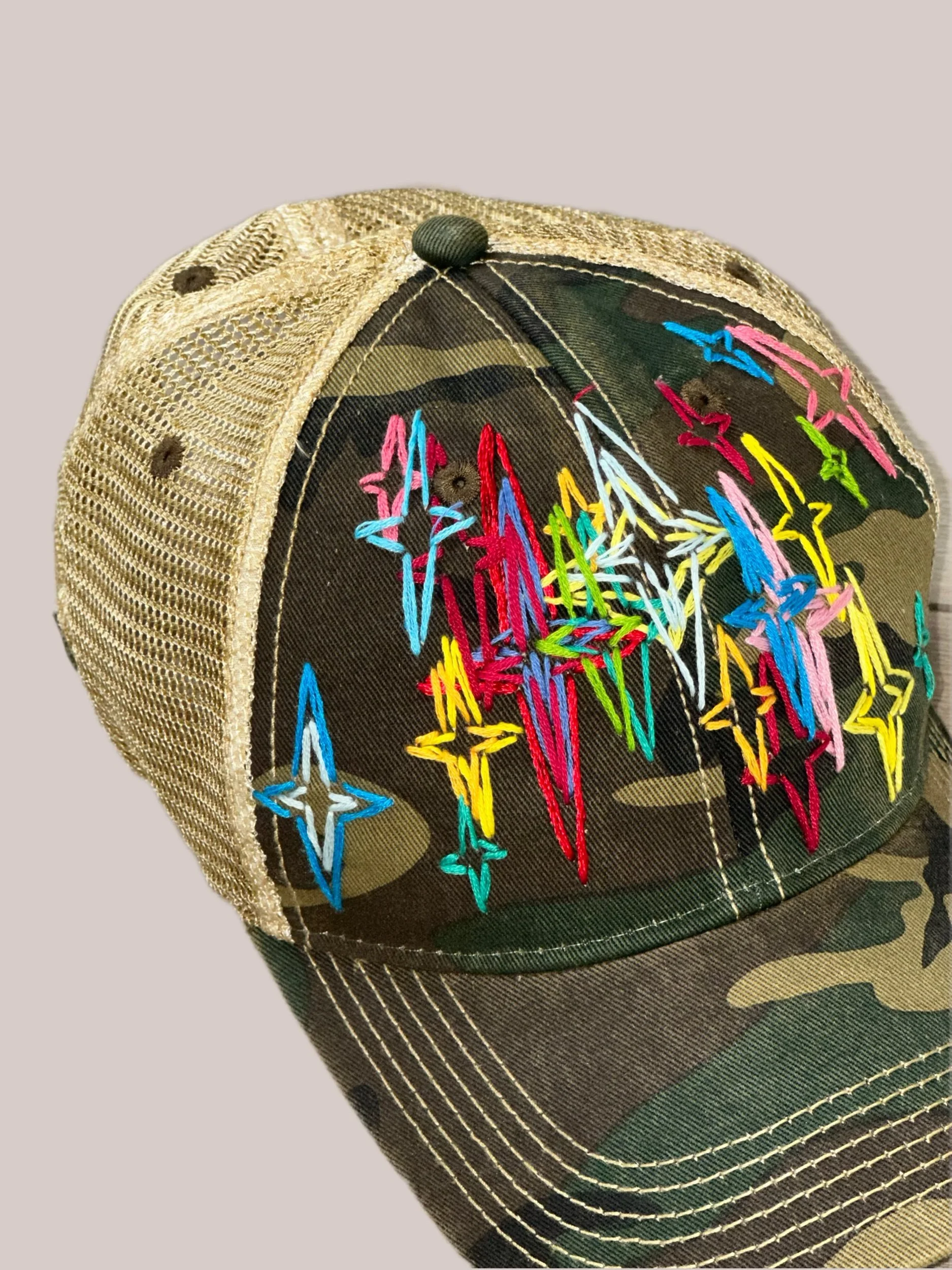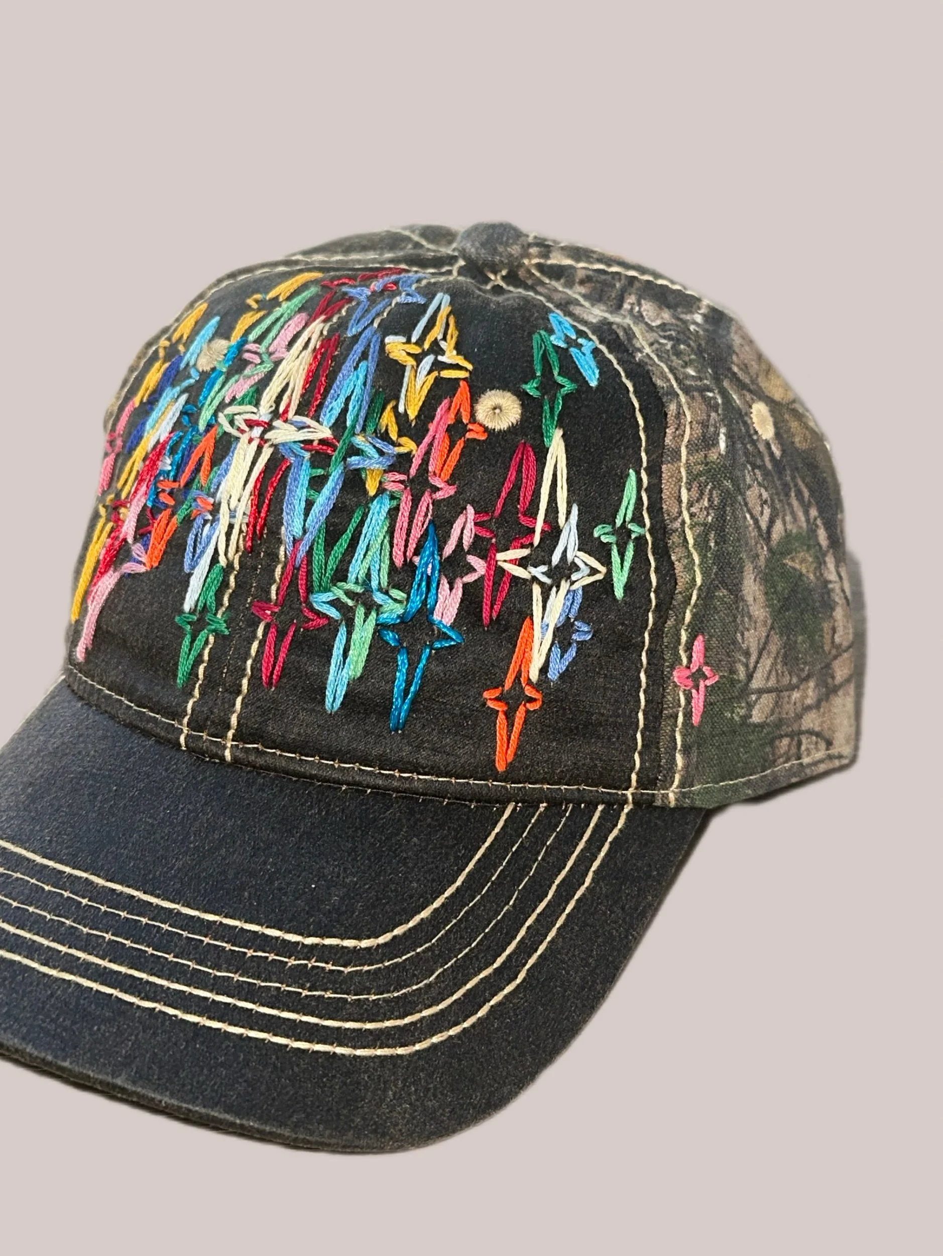 Each hat is 1 of 1. Embroidery is meticulously sewn by hand for 5 to 7 hours.