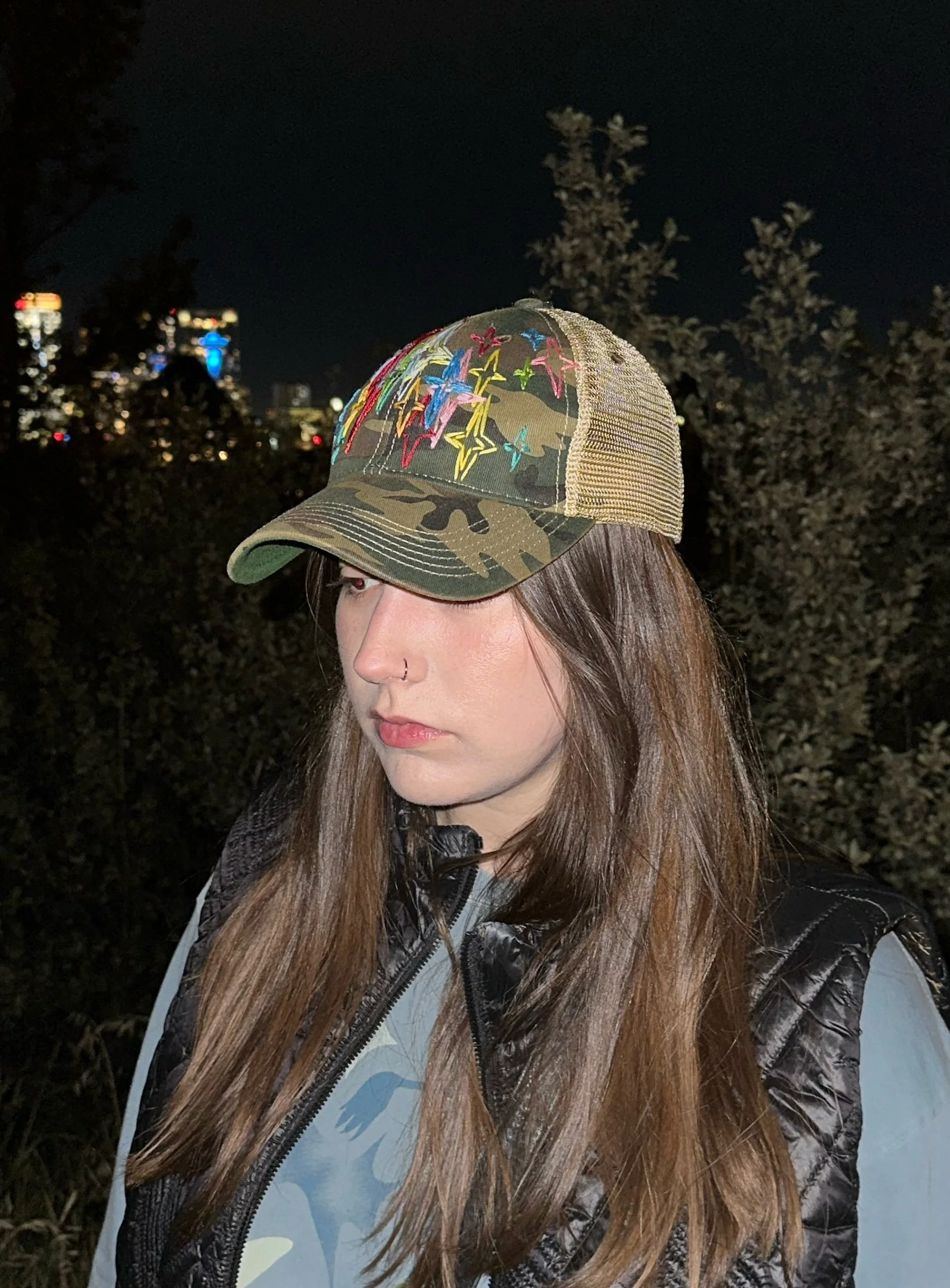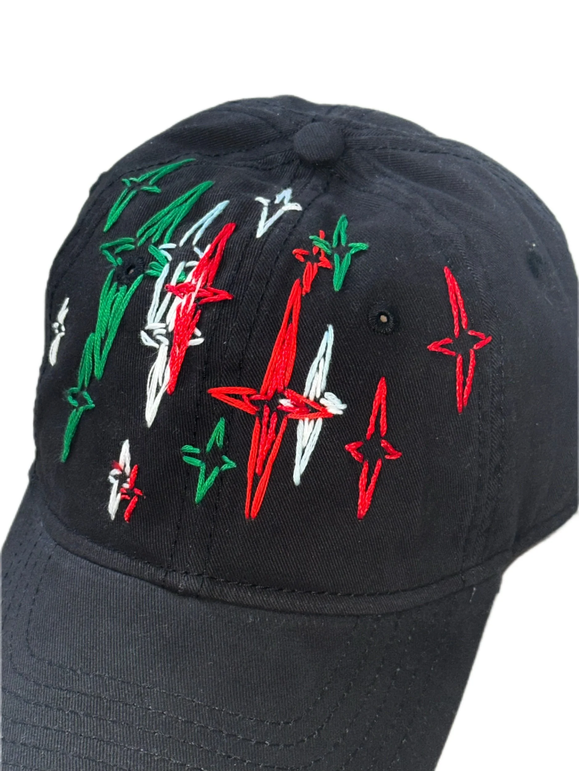 Each hat is 1 of 1. Embroidery is meticulously sewn by hand for 5 to 7 hours.
